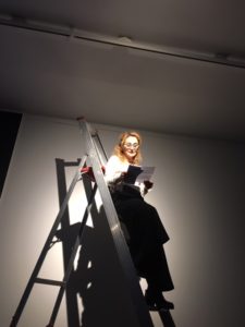 A queste parole si legano quelle della lettera della madre di Mona Hatoum (un’artista anglo-palestinese presente nella mostra) che Marcela Serli legge abbarbicata su una scala a pioli, in equilibrio precario nello spazio, con una bambina che raccoglie a terra i fogli cadenti. Una riflessione sul distacco e sulla possibilità o meno di comunicare attraverso gli spazie le distanze culturali.