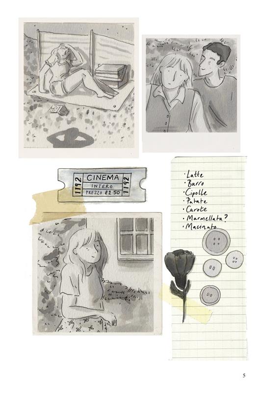 È un dubbio terribile. Lizzy Stewart, con grazia e profondità usa immagini e parole per metterci in quella situazione. In ogni tavola della graphic novel, riesce a racchiudere enormi quantità di informazioni, e riesce a dare movimento alla sua narrazione anche quando la sua eroina è silenziosa e bloccata. Il libro è costruito come l’archivio di una vita: foto, biglietti, schizzi, tavole, appunti, lettere, copertine di libri. La narrazione scelta dall’autrice è, davvero, la costruzione di una relazione intima con la protagonista.